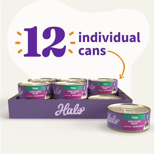 Vendor:Halo Wet Cat Food Turkey & Duck Recipe, Grain Free Wet Cat Pate, Canned Cat Food for Extra Hydration, 5.5 Oz Can (Pack of 12)Regular price $1,000,000.00 USDRegular priceUnit price / perSale price $1,000,000.00 USD -