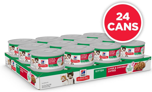 Hill's Science Diet Kitten, Kitten Premium Nutrition, Wet Cat Food, Liver & Chicken Minced, 5.5 oz Can, Case of 24