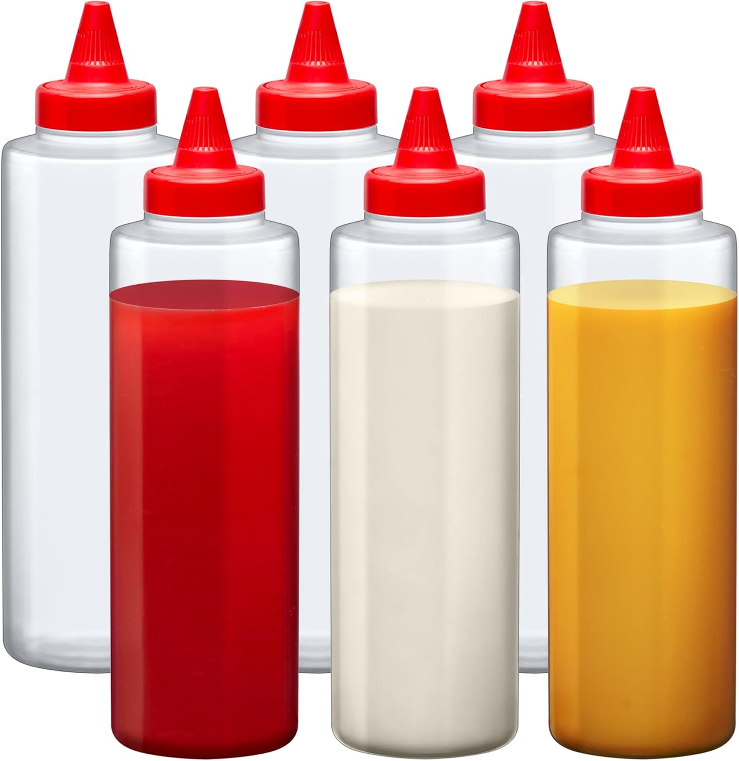 Amazing Abby 16-Ounce Plastic Squeeze Bottles (Set of 6), Reusable Condiment Bottles, BFA-Free, Dishwasher-Safe, Perfect for Ketchup, Mustard, Mayonnaise, Sauces, Condiments, Dressings, and More
