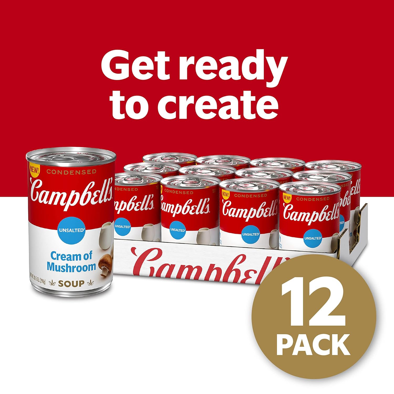 Campbell’s Condensed Unsalted Cream of Mushroom Soup, 10.5 Ounce Can (Pack of 12), brand is Campbell''s