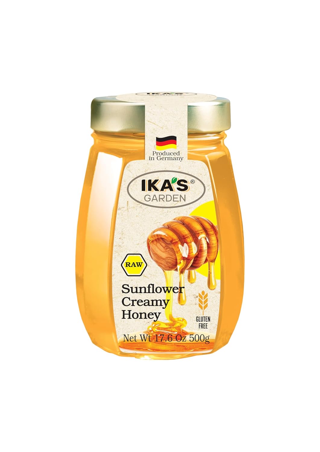 Ika's Garden Raw Sunflower Creamy Honey - 100% Pure, Unfiltered, Gluten-Free – Product of Germany, 17.6 oz (500g) Jar