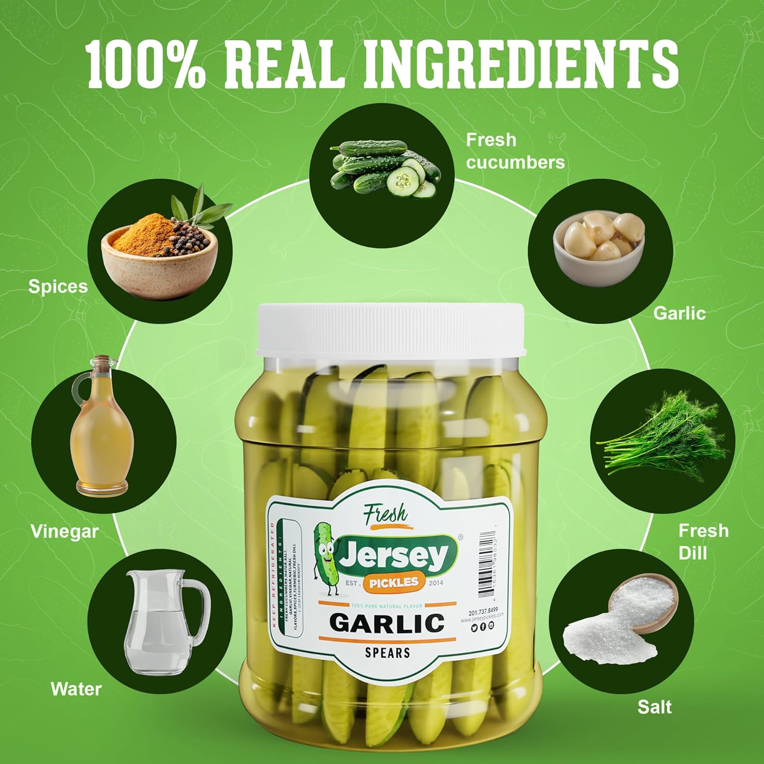Jersey Pickles - Garlic Dill Spears Fresh (Gallon) - Fresh, Keto-Friendly, and Perfect for Snacks, Sandwiches, or Salads – The perfect Pickle Jars Cornichon for Families or Gatherings