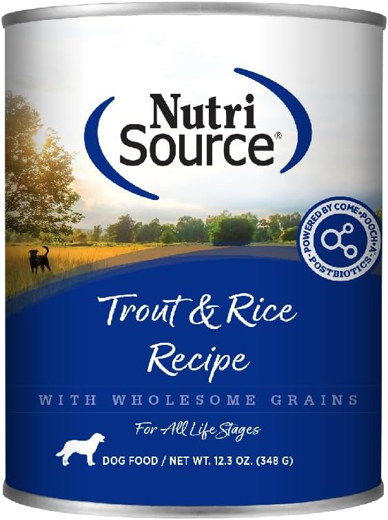 NutriSource Trout & Rice Recipe Dog Food, Premium Wet Dog Food, 12.3 Ounce (Pack of 12)