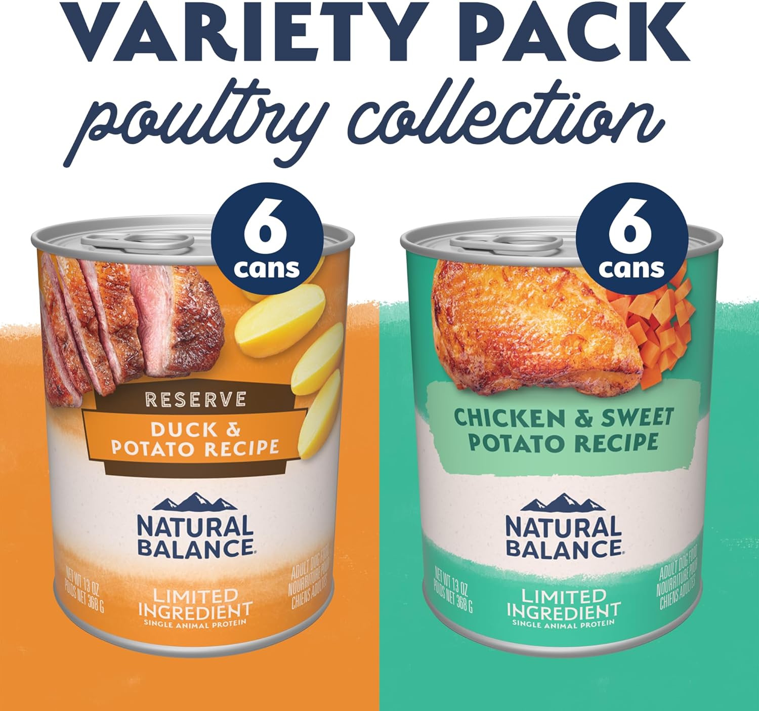 Natural Balance Limited Ingredient Wet Dog Food, Variety Pack, Reserve Duck & Potato and Chicken & Sweet Potato, 13oz., (Case of 12)