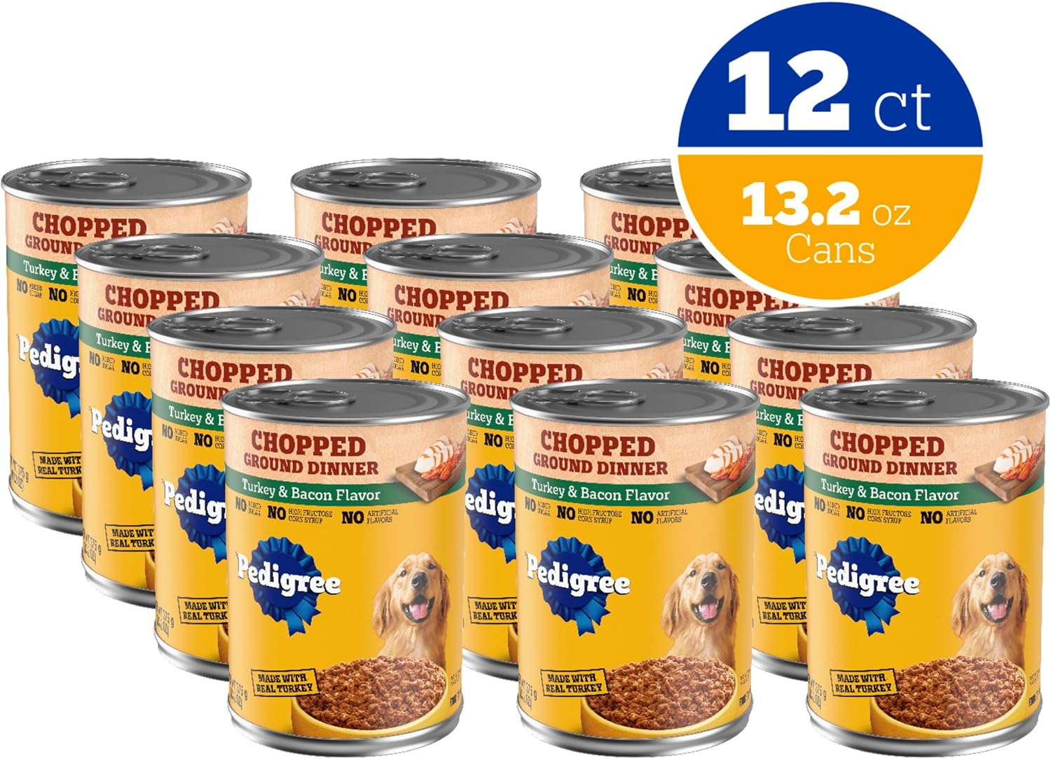 Pedigree Chopped Ground Dinner Adult Soft Wet Dog Food Turkey & Bacon Flavor, 13.2 oz. Cans (12 Count, Pack of 1)
