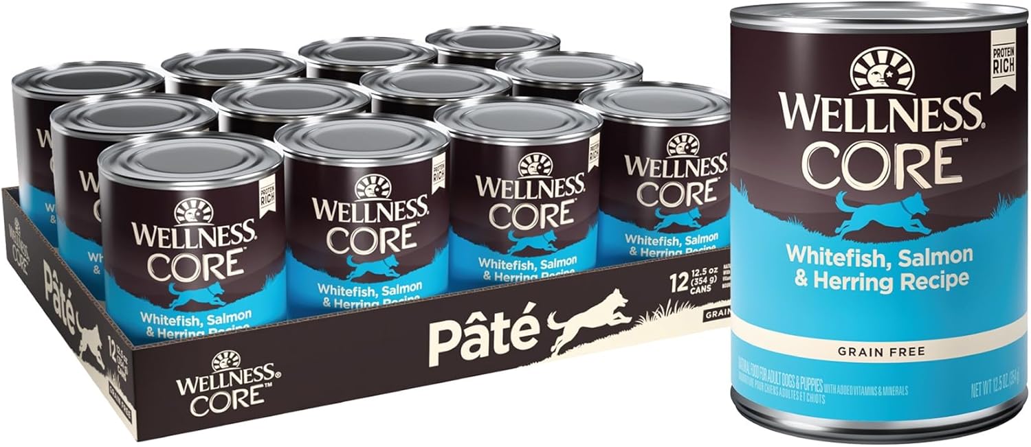 Wellness CORE Natural Wet Grain Free Canned Dog Food, Whitefish, Salmon & Herring, 12.5-Ounce Can (Pack of 12)