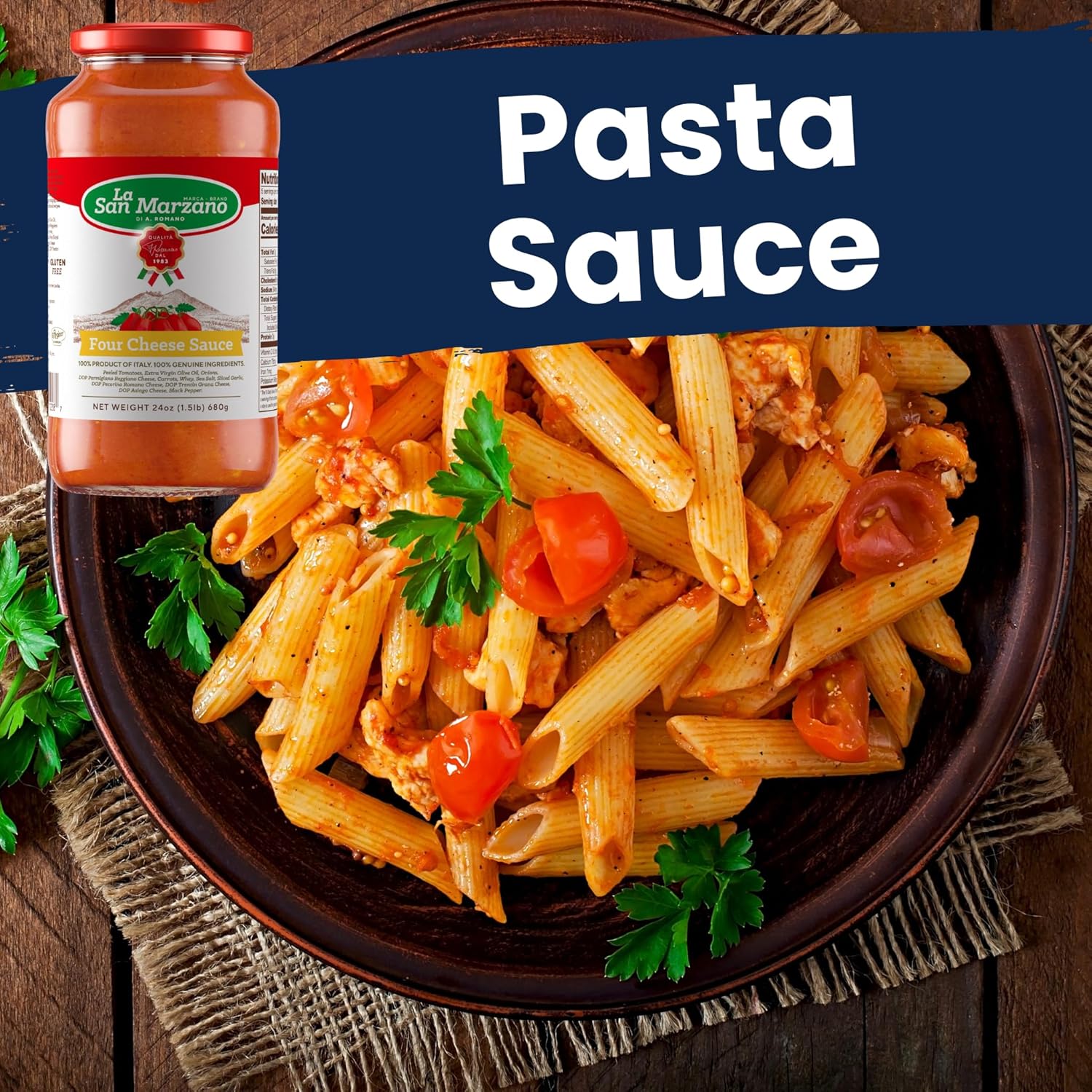 La San Marzano - Four Cheese Sauce - Pasta Sauce with 100% Italian Tomatoes Made in Italy - Peeled Tomatoes with Fresh and Natural Ingredients Gluten Free, Kosher 24 Ounce Jar