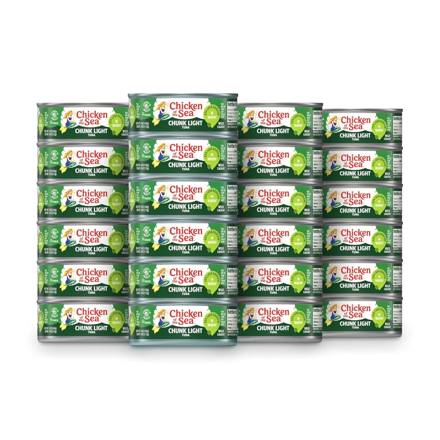 Chicken of the Sea Chunk Light Tuna in Water, 5 Ounce Cans (Pack of 24), Wild Caught Canned Tuna, 25% Less Sodium