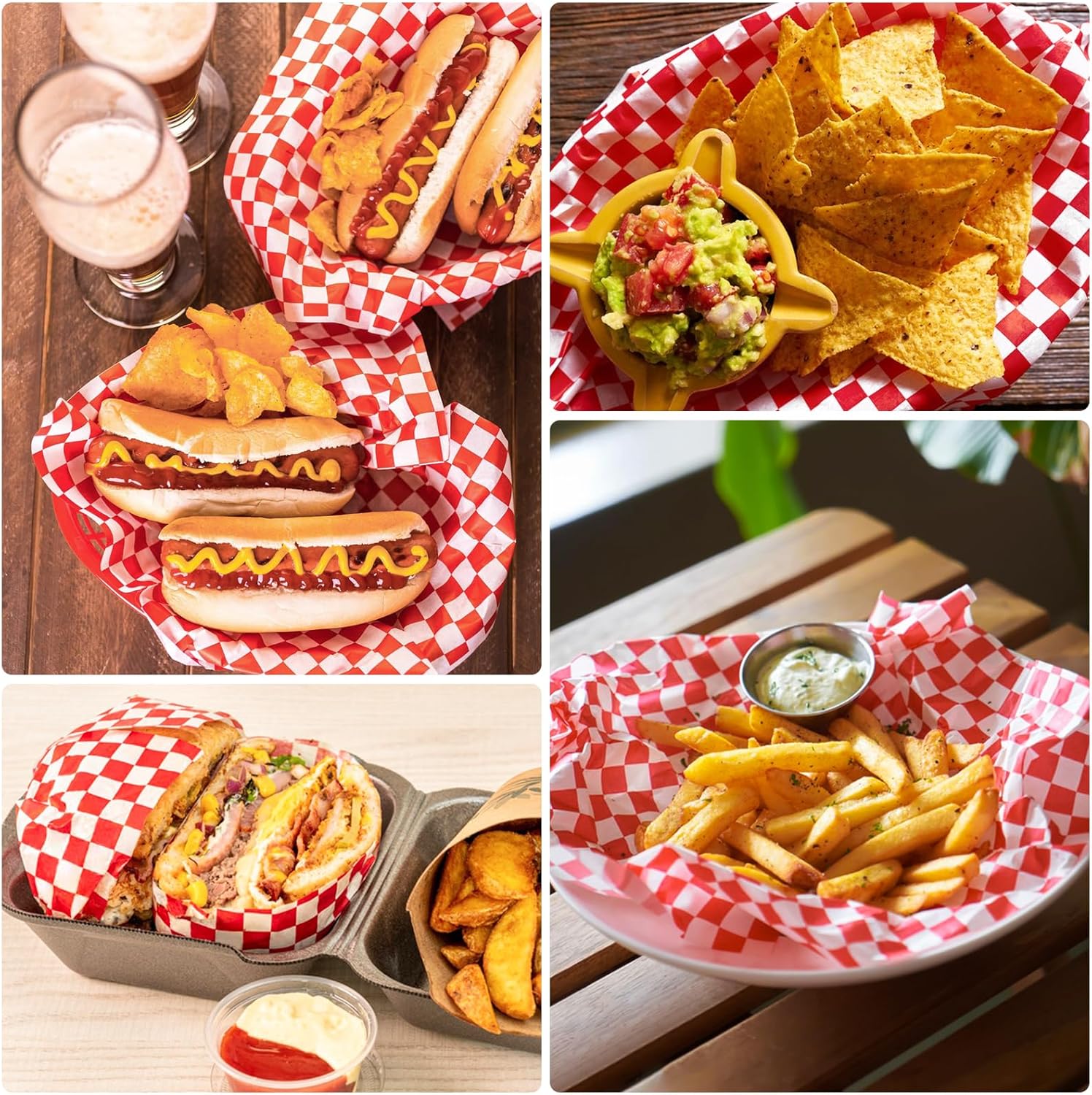 500 Sheets Red and White Checkered Deli Paper, 12 x 12 Inch Grease Resistant Food Basket Liners, Classic Wrapping Paper for Sandwiches, Hamburgers, Hot dogs, Fast Food
