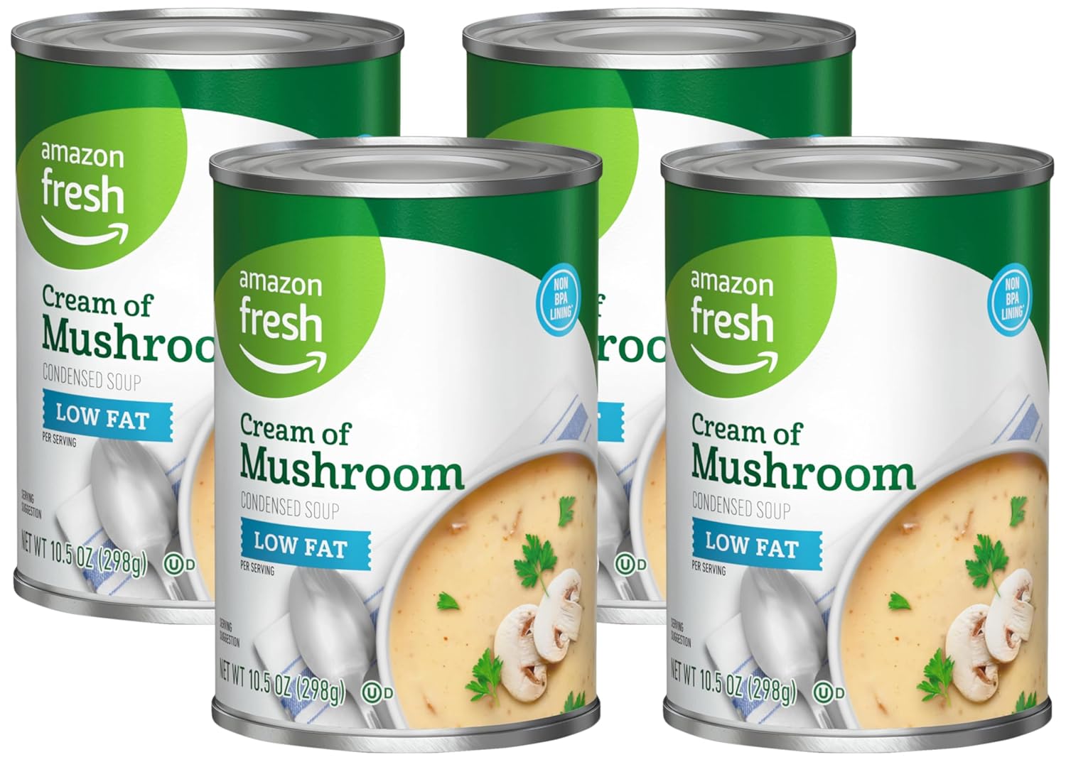 Amazon Fresh, Condensed Low Fat Cream Of Mushroom Soup, 10.5 Oz (Previously Happy Belly, Packaging May Vary) (Pack of 4)