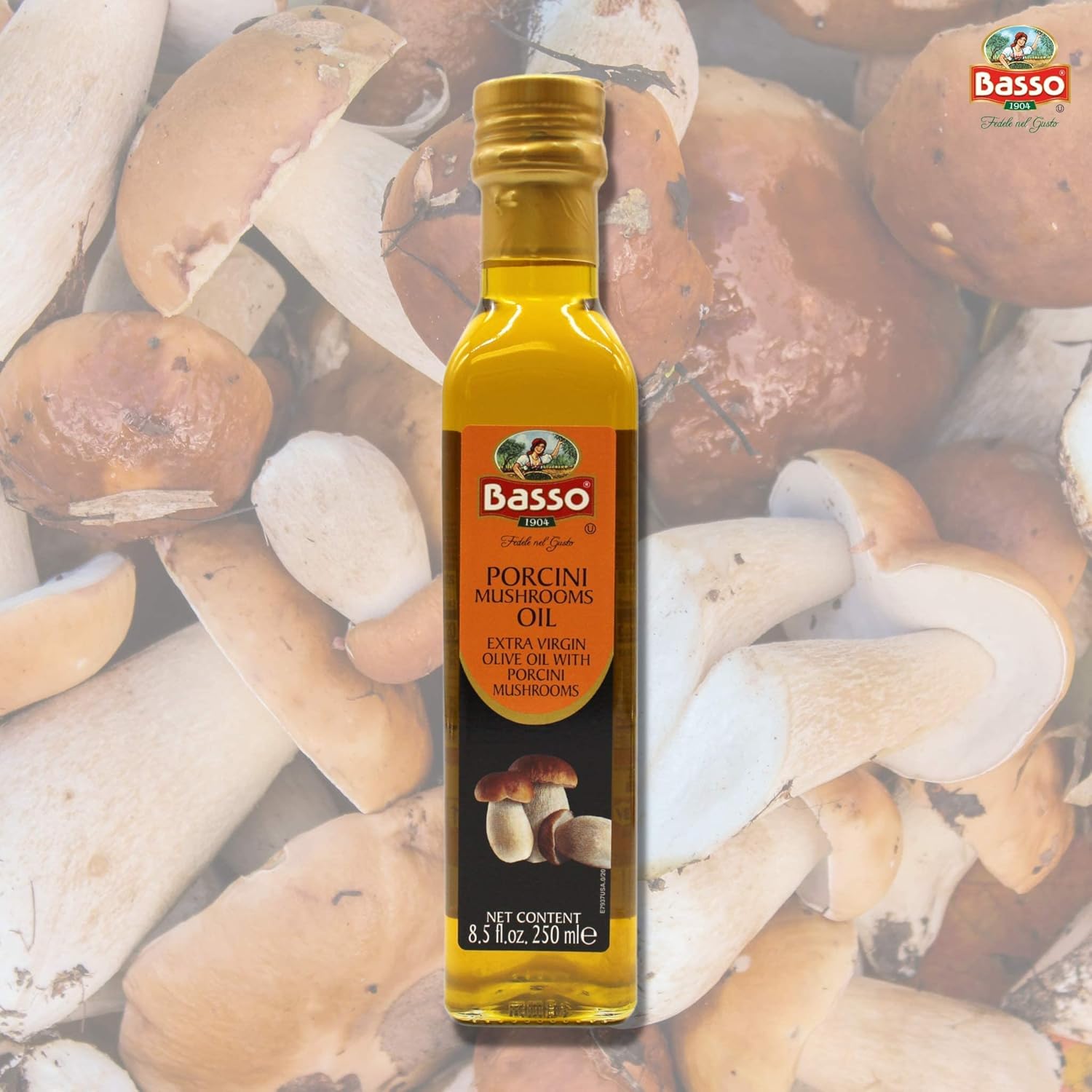 BASSO 1904 - Infused Olive Oil Gift Box Set, White Truffle, Lemon, Porcini, Oregano Extra Virgin Olive Oil, 4 bottles x 8.5 fl.oz (250ml)