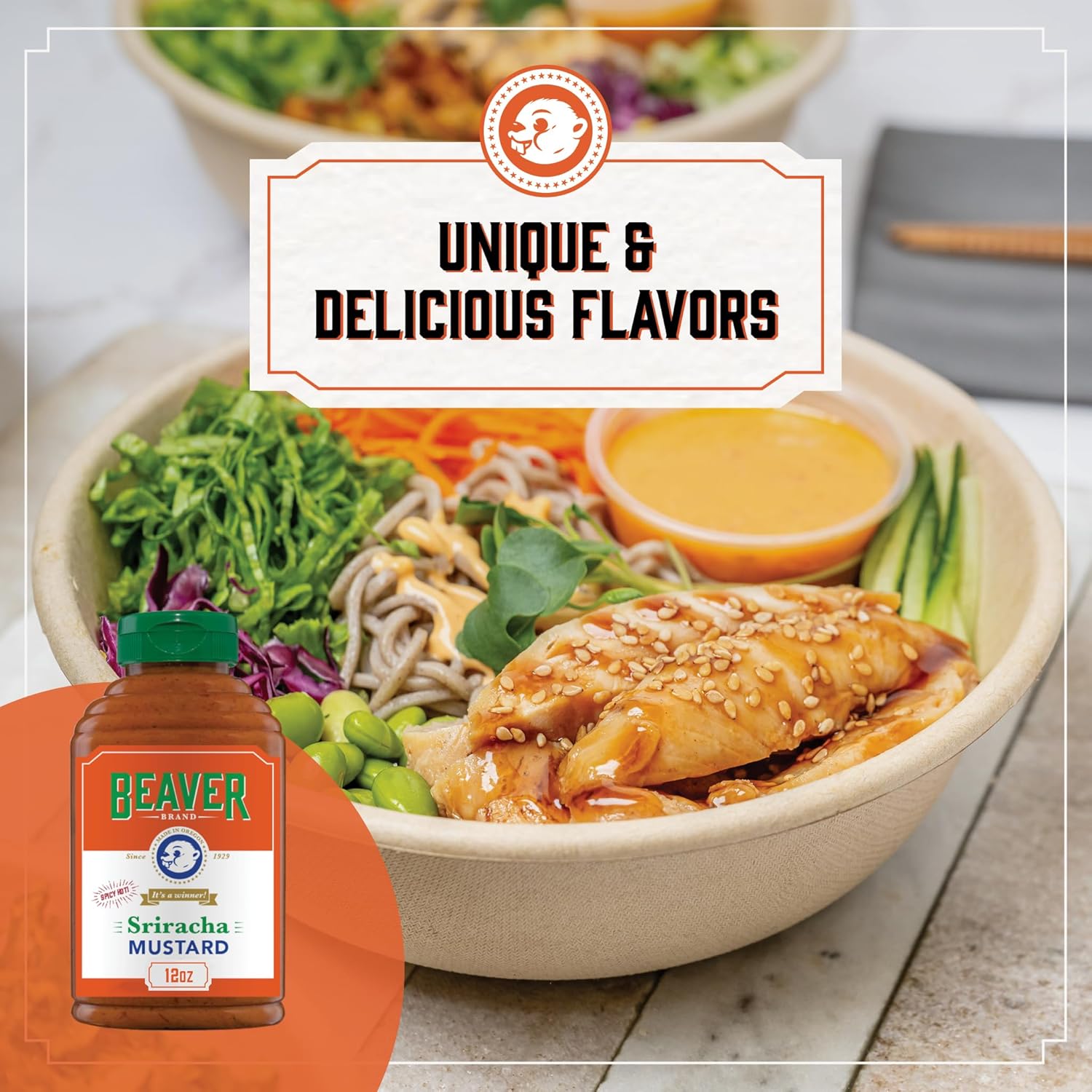 Beaver Extra Hot Sriracha Mustard, 12 Ounce Squeeze Bottle
