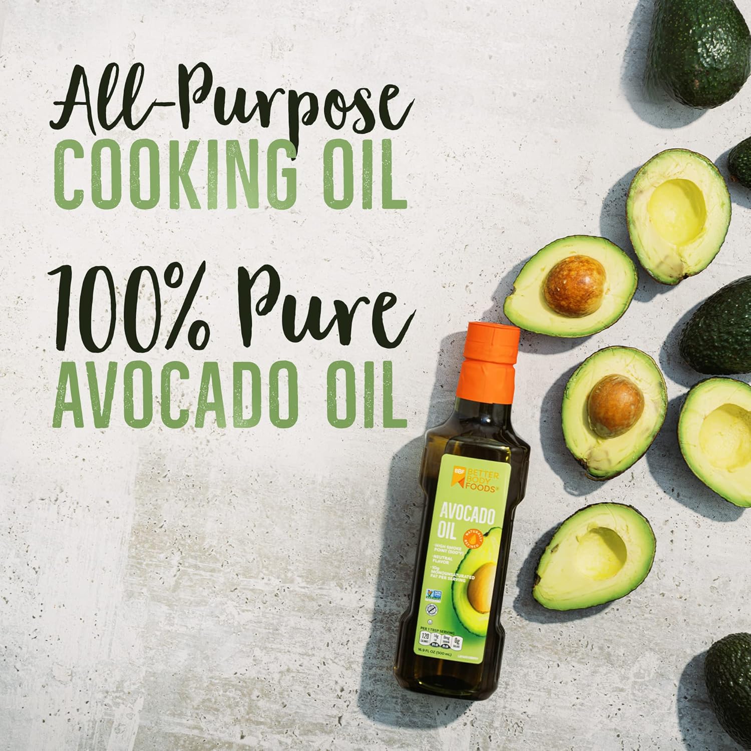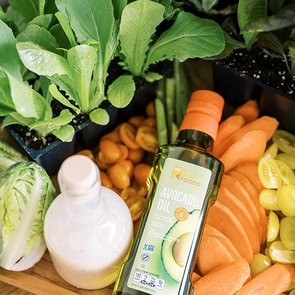 BetterBody Foods Refined Avocado Oil, Non-GMO Cooking Oil, Kosher, Keto and Paleo Diet Friendly, for High-Heat Cooking, Frying, Baking, 100% Pure Avocado Oil, 500 mL, 16.9 Fl Oz (Pack of 2)