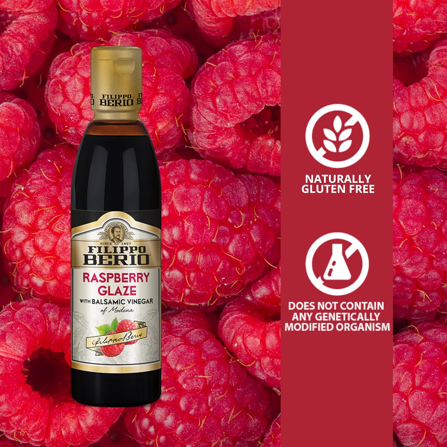 Filippo Berio Raspberry Glaze with Balsamic Vinegar of Modena, 8.4 Ounce Plastic Bottle, Gluten Free, Non-GMO