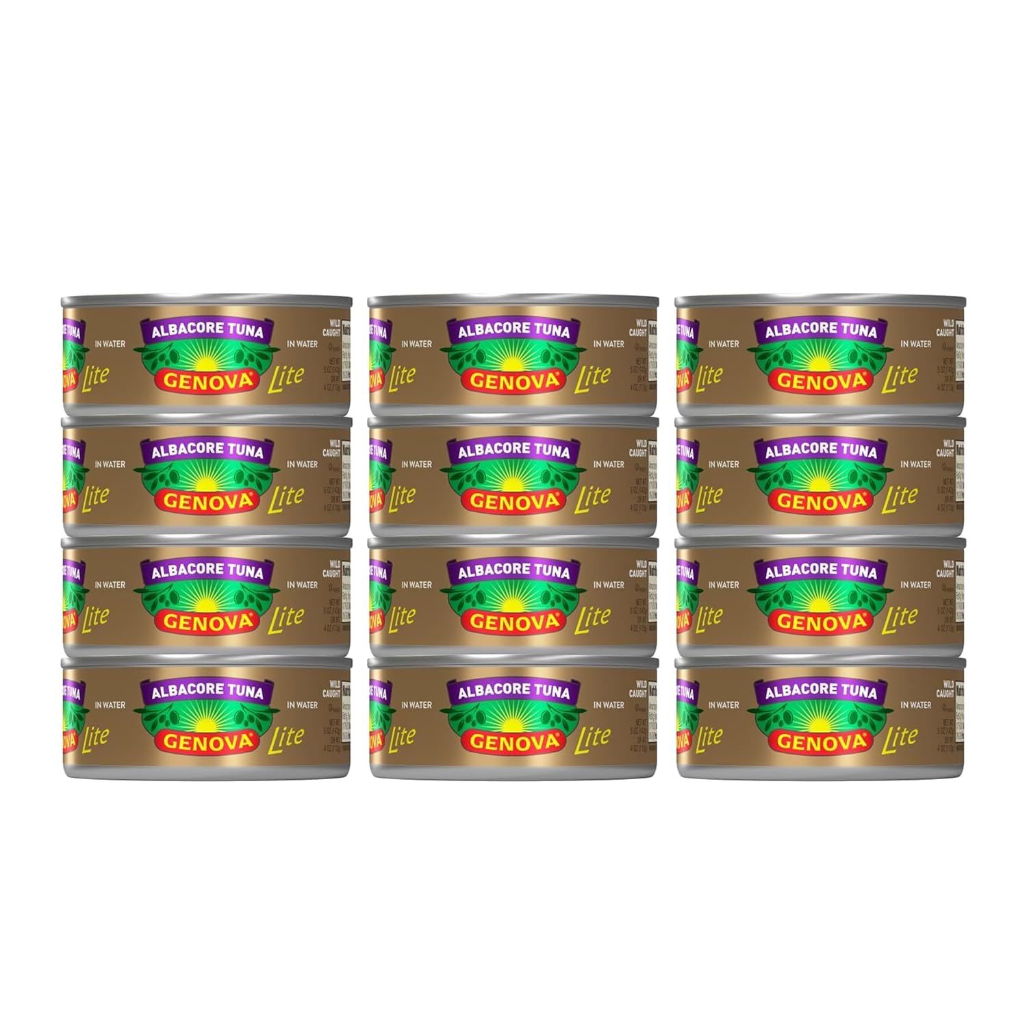 Genova Premium Lite Albacore Tuna in Water, 5 oz. Cans (Pack of 12), Wild Caught Canned Tuna, Solid White