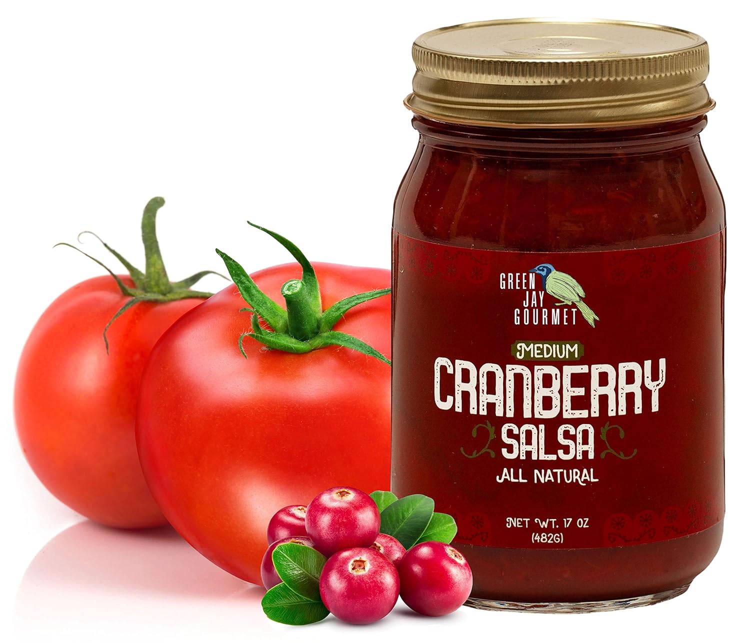 Green Jay Gourmet Cranberry Salsa - Holiday Seasonal Fruit Salsa - Medium Heat Picante Salsa - Gourmet Salsa Dip with No Preservatives - Gluten-Free, Small Batch, Natural Salsa Sauce - 17 Ounces