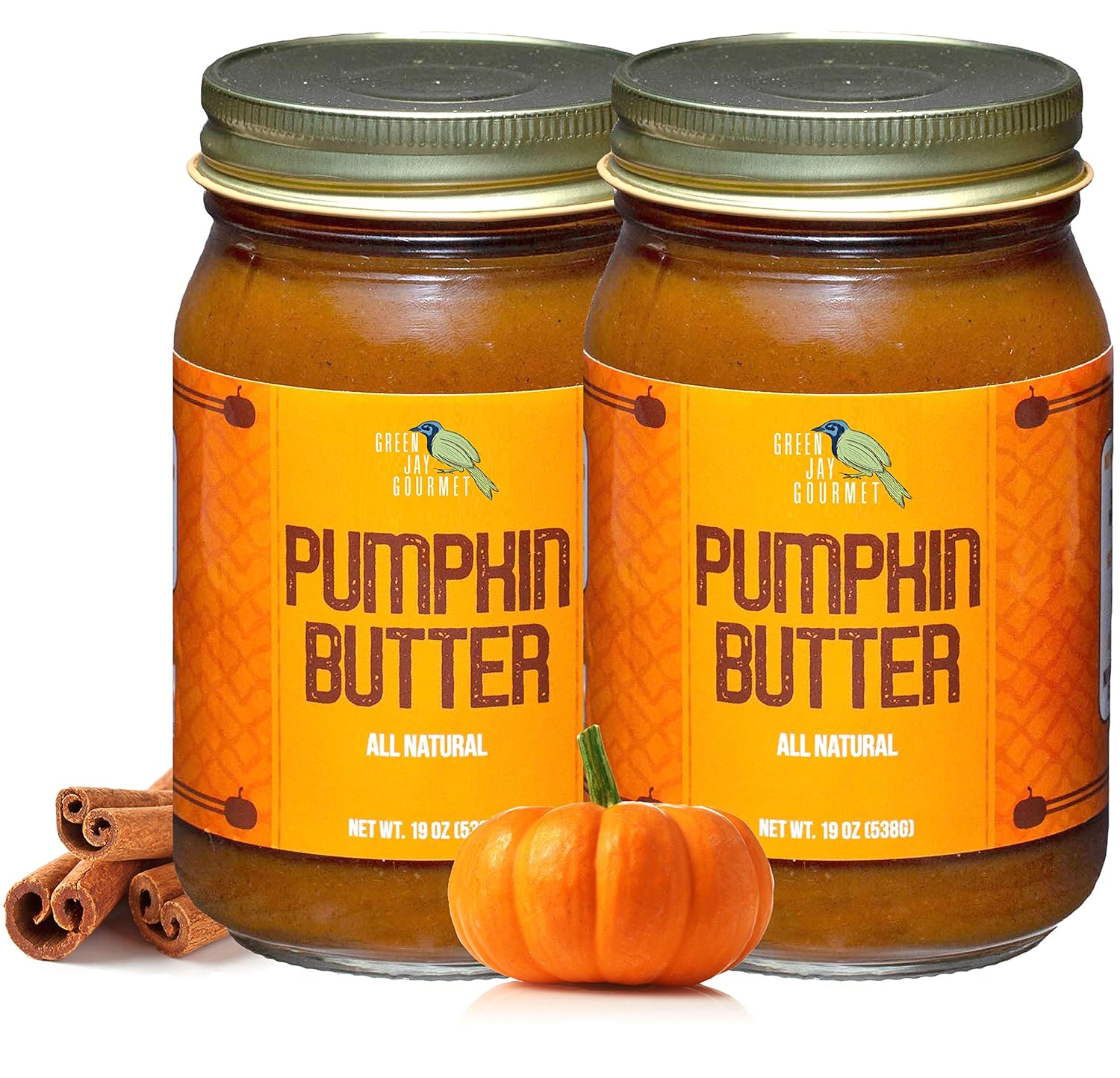 Green Jay Gourmet Pumpkin Butter 2 x 19 Ounces - All-Natural, Gluten-Free Fruit Spread - Pumpkin Spread with Pumpkins & Spices - Gourmet Fruit Butter - No Corn Syrup, Preservatives or Trans-Fats