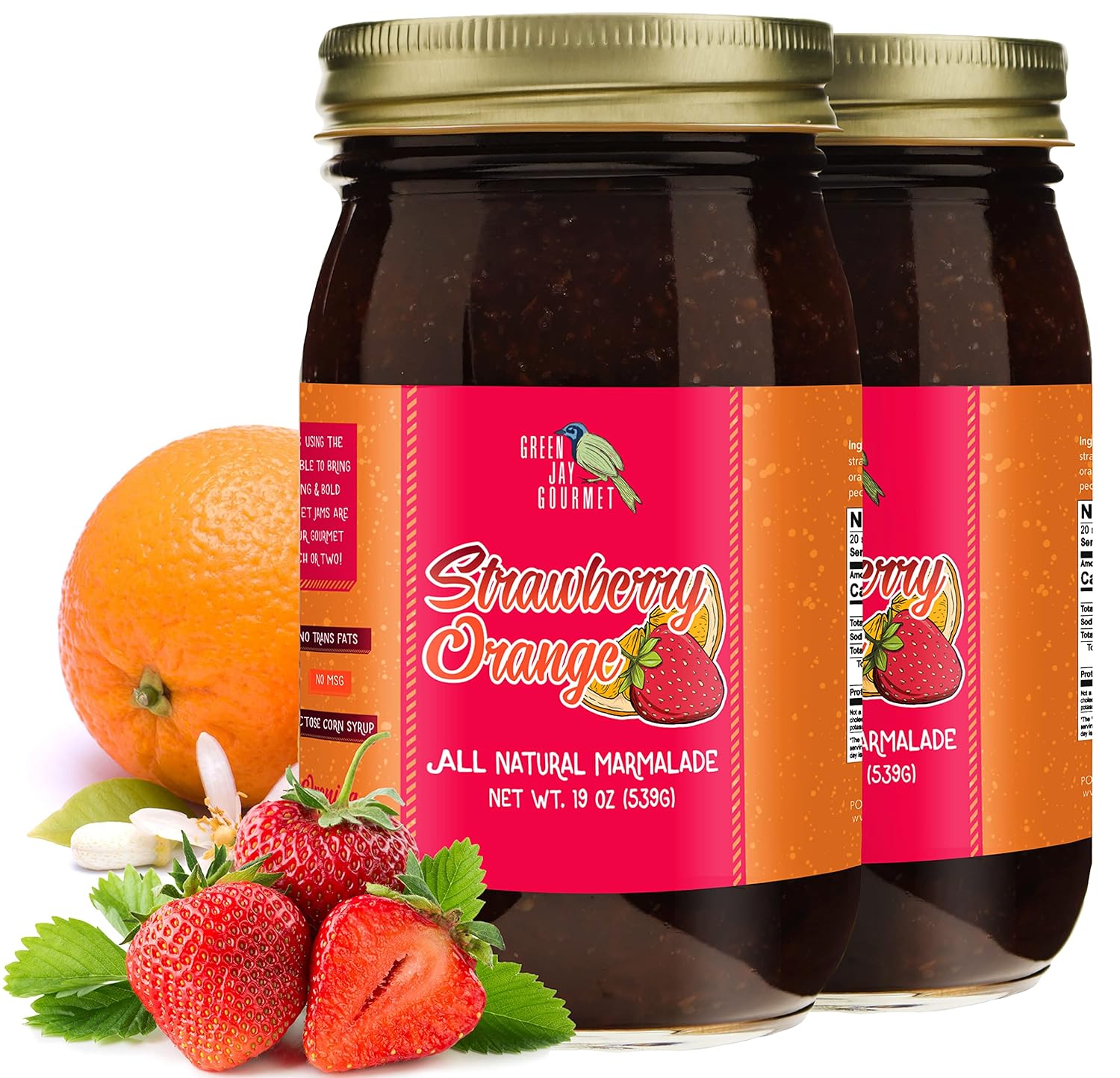 Green Jay Gourmet Strawberry Orange Marmalade – All-Natural Strawberry Orange Jam – Vegan, Gluten Free Marmalade - Contains No Preservatives or Corn Syrup – USA Made Orange Strawberry Jelly – 38 Ounce