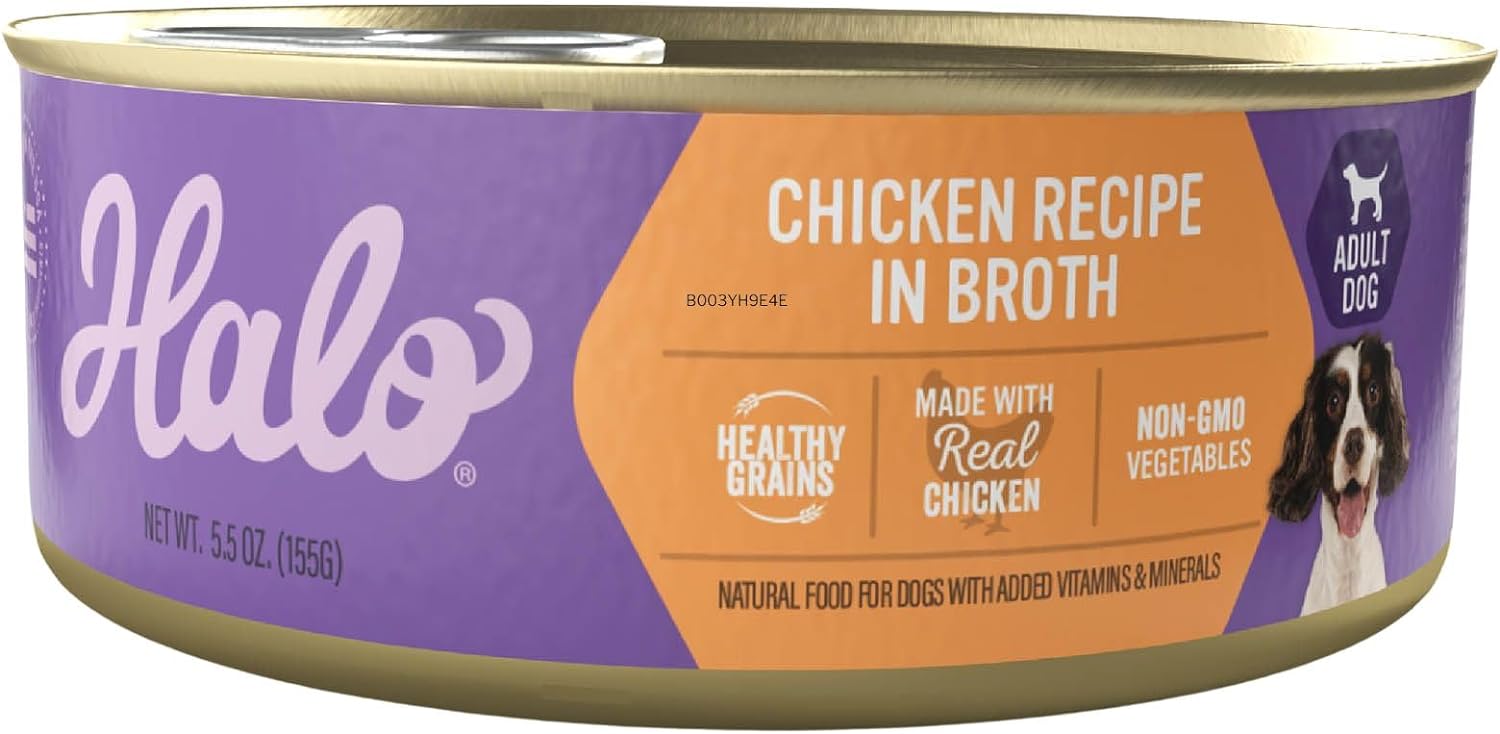 Halo Wet Dog Food Whole Chicken Stew Recipe, Healthy Grains Real Meat Canned Dog Food, Meal or Topper, 5.5 Oz Can (Pack of 12)