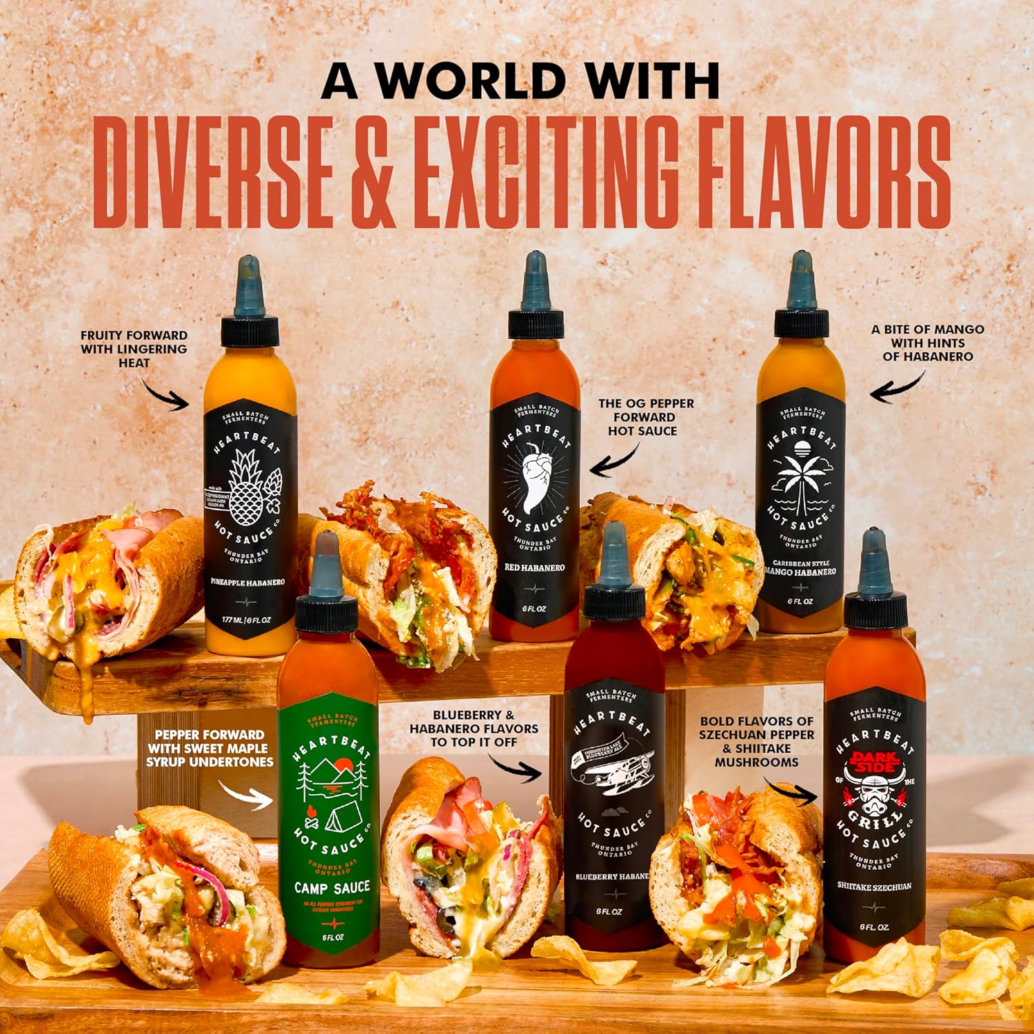 Heartbeat Hot Sauce Co. | Complete Variety Pack - Camp Sauce, Pineapple, Red & Mango Habanero, Blueberry Habanero, Shiitake Szechuan, 6 oz. 6 pack