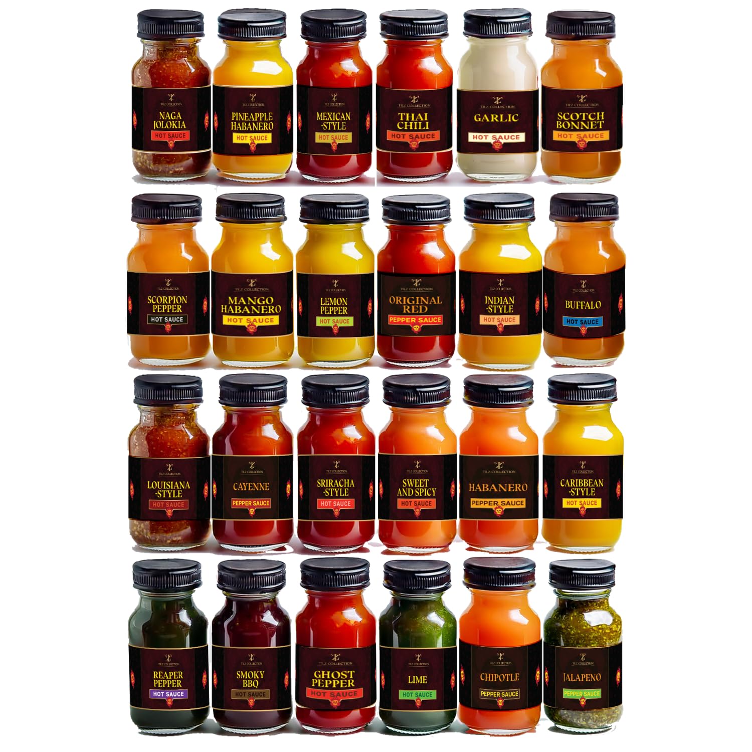 Hot Sauce Gift Sets - Hot Sauce Variety Pack, Hot Sauce Sampler, 24 Mini Hot Sauce Bottles, Hot Sauce Gift Sets For Men |Hot Sauce Collection Gift Set, Food Gifts For Men, Women |Hot Sauce Gift Sets