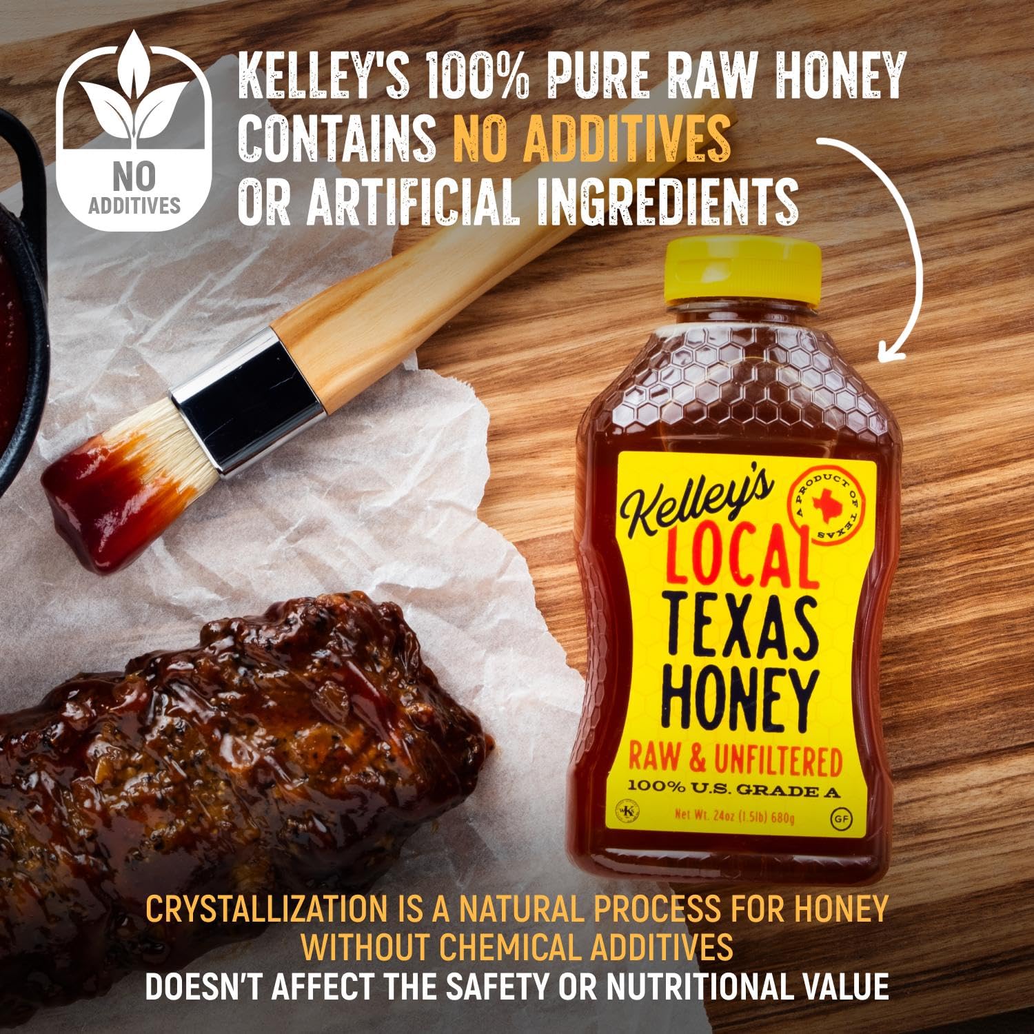 Kelley's Local Texas Honey – 100% Pure, Raw & Unfiltered, 24 oz – All-Natural American Honey for Tea, Smoothies, Yogurt, Toasts or BBQ