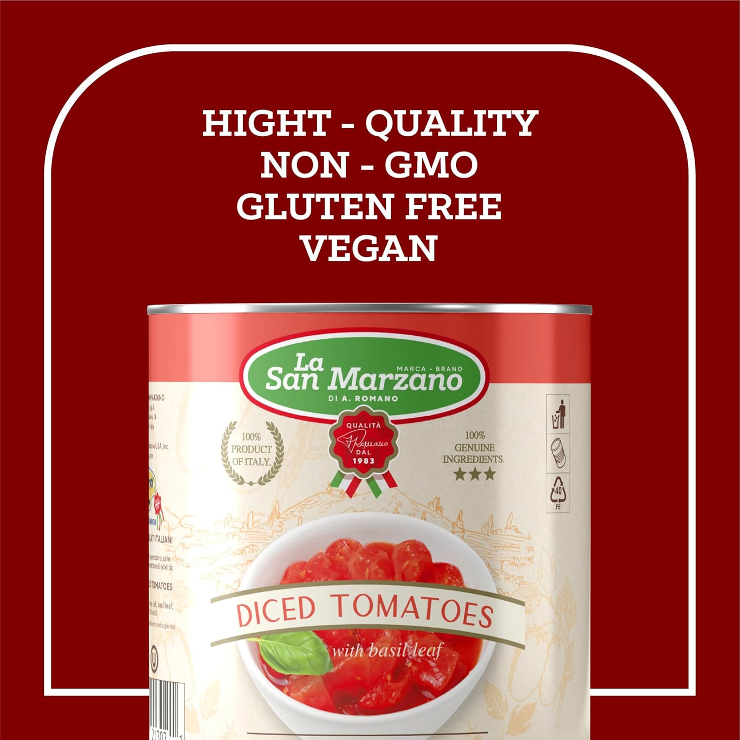 La San Marzano 6 Pack, Italian Diced Chopped Crushed Tomatoes, 100% Product of Italy, 6 x 28 Oz Can, Italian Style, Packed in San Marzano Region of Italy by La Regina