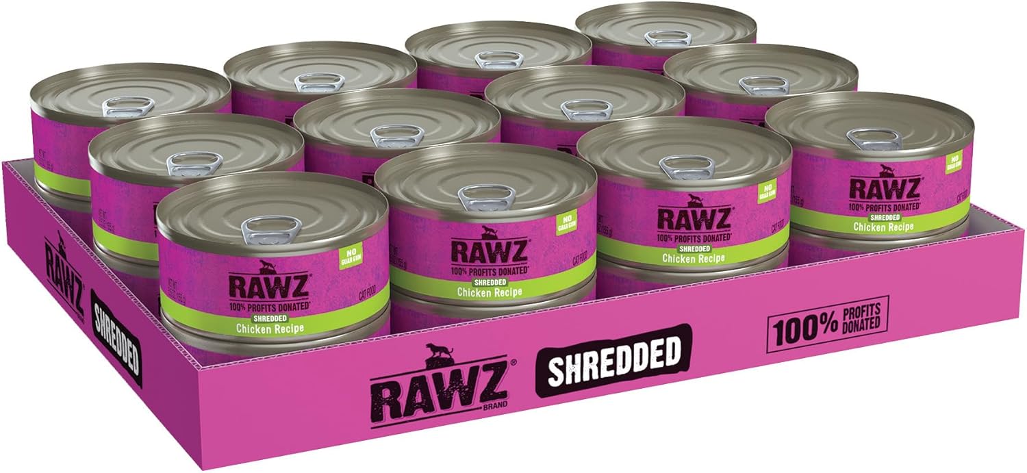 Rawz Natural Premium Shredded Canned Cat Wet Food - Made with Real Meat Ingredients No BPA or Gums - 5.5oz Cans 24 Count (Chicken)