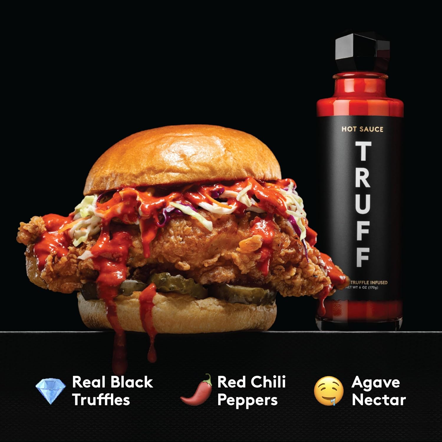 TRUFF Hot Sauce and Hotter Sauce 2-Pack Bundle, Gourmet Hot Sauce Set, Black Truffle and Chili Peppers, Gift Idea for The Hot Sauce Fans (Black/Red, 6 oz, 2 Count)
