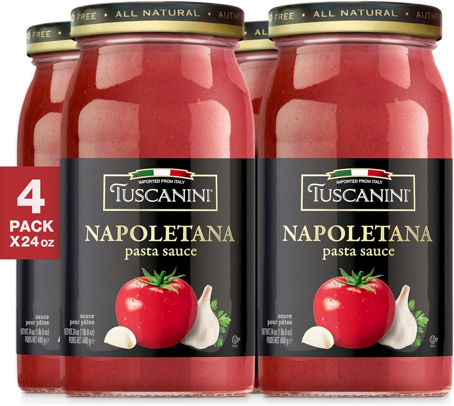 Tuscanini Napoletana Pasta Sauce 24.3oz (4 Pack) | Imported from Italy | No Water Added | Rich & Authentic Italian Taste | Certified Kosher