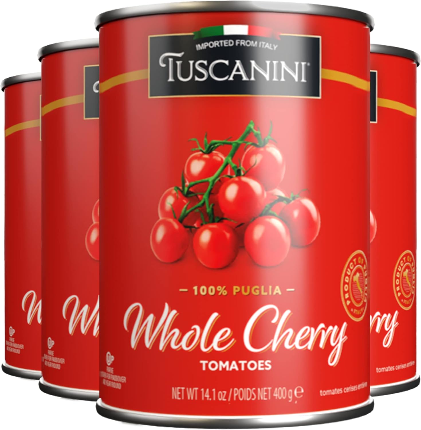 Tuscanini Whole Cherry Tomatoes 14.1oz (4 Pack) | Imported From Italy, Delicious Taste & Texture, BPA Free Lined Can, Kosher for Passover