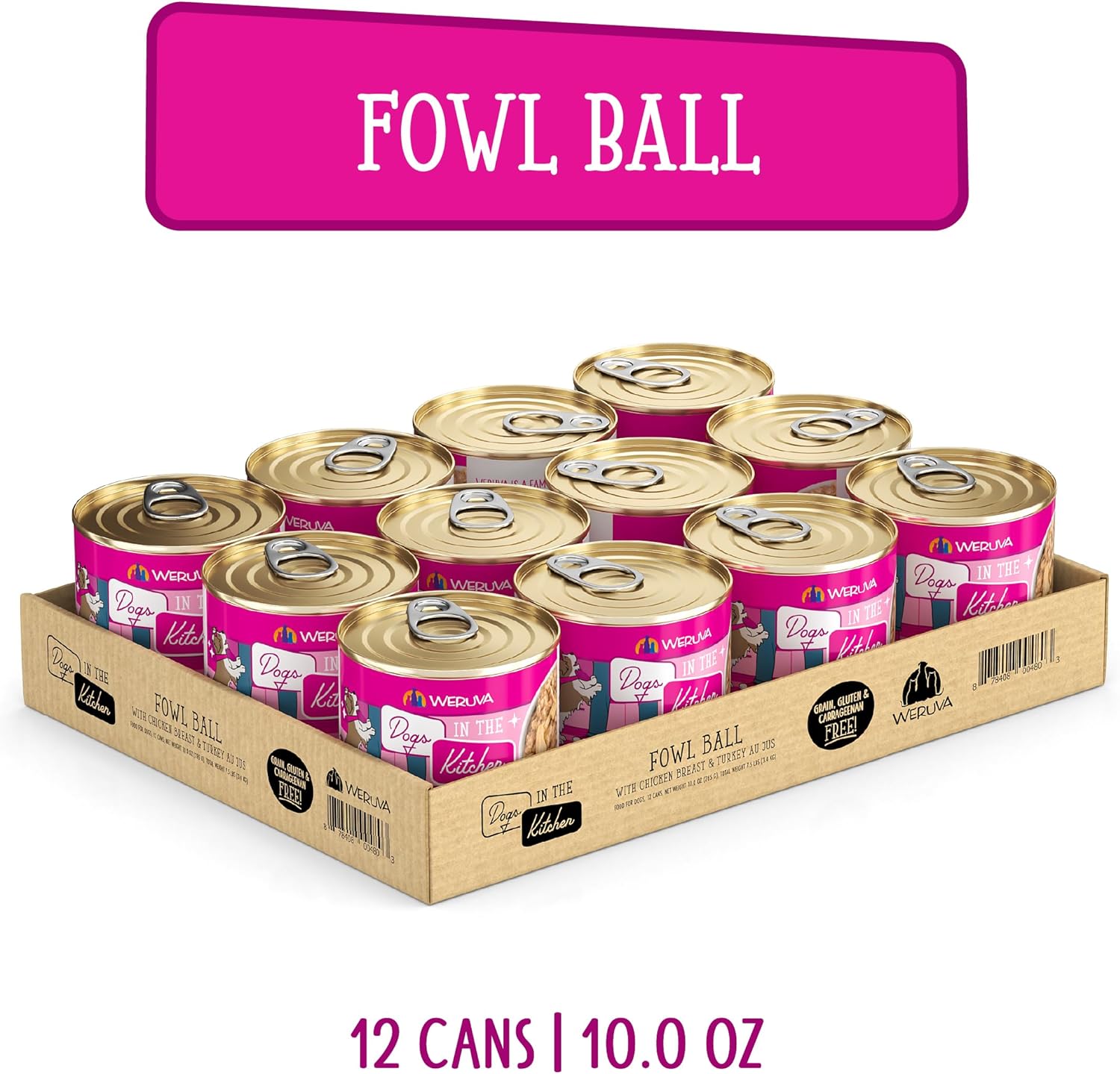 Weruva Dogs in The Kitchen, Fowl Ball with Chicken Breast & Turkey Au Jus Dog Food, 10oz Can (Pack of 12)