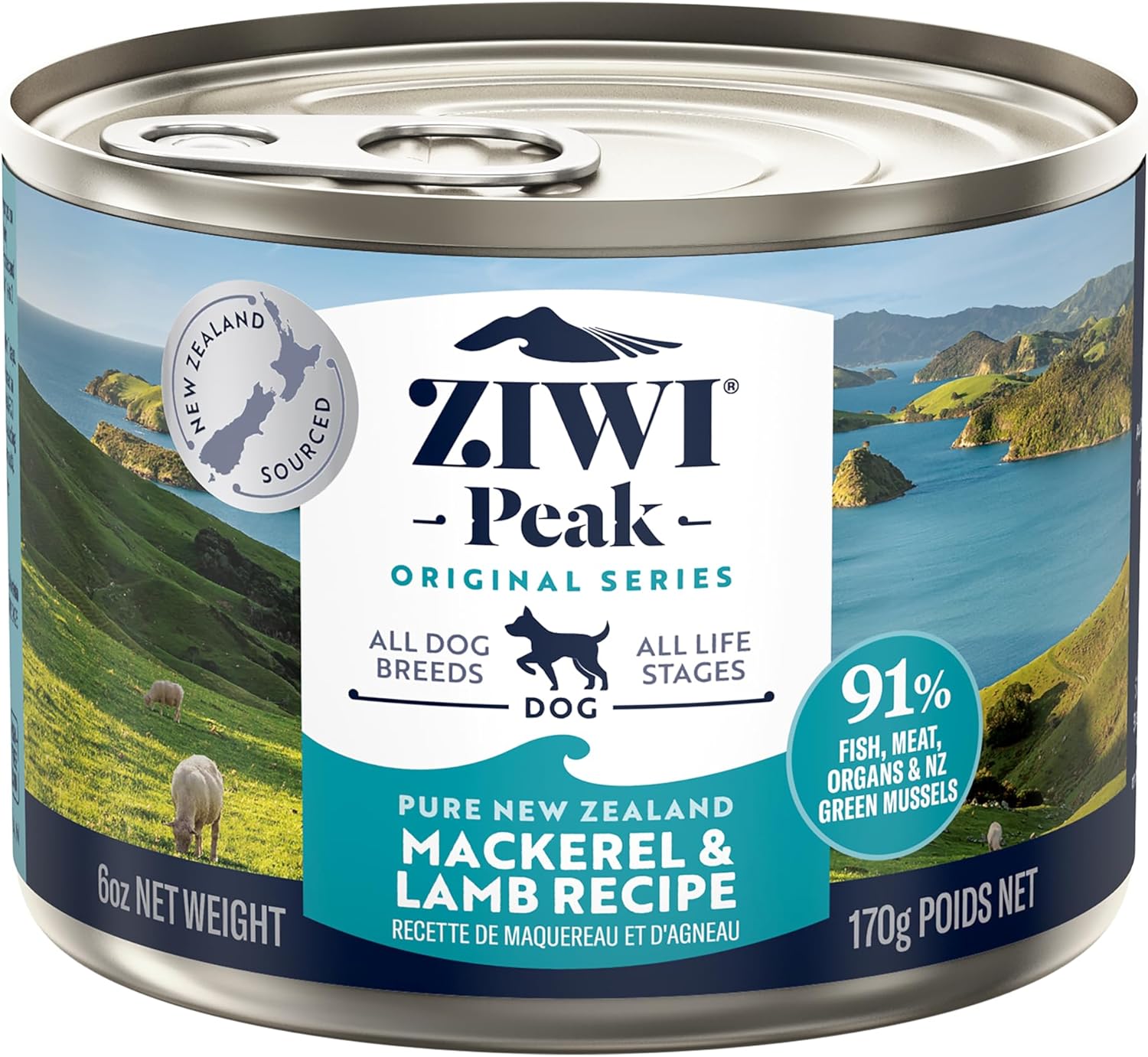 ZIWI Peak Canned Wet Dog Food – All Natural, High Protein, Grain Free, Limited Ingredient, with Superfoods (Mackerel & Lamb, Case of 12, 6oz Cans)