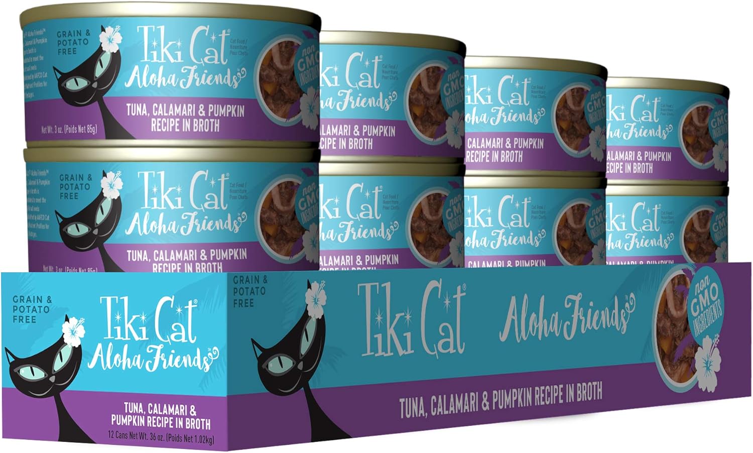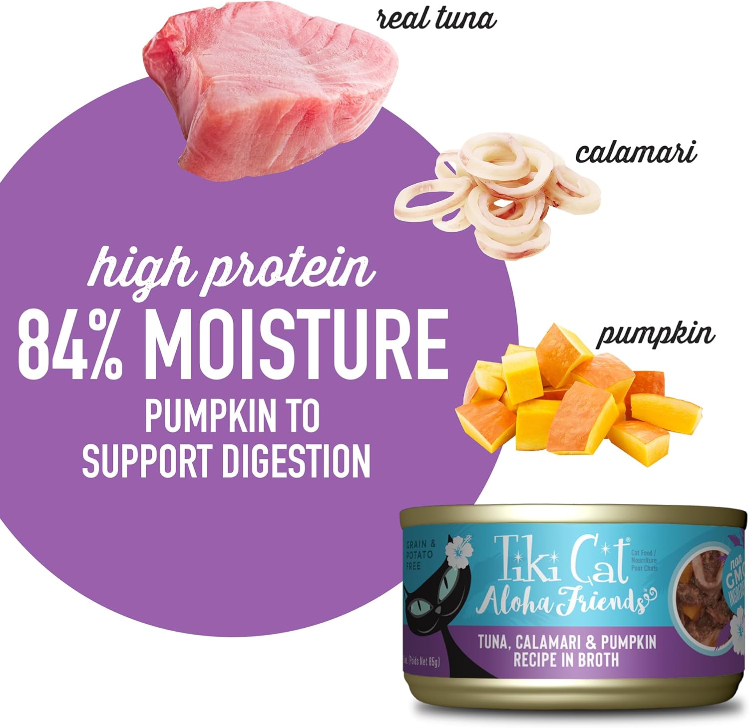Tiki Cat Aloha Friends, Tuna, Calamari & Pumpkin, Grain-Free & High Moisture, Wet Cat Food for All Life Stages 3 oz. Can (12 Count)